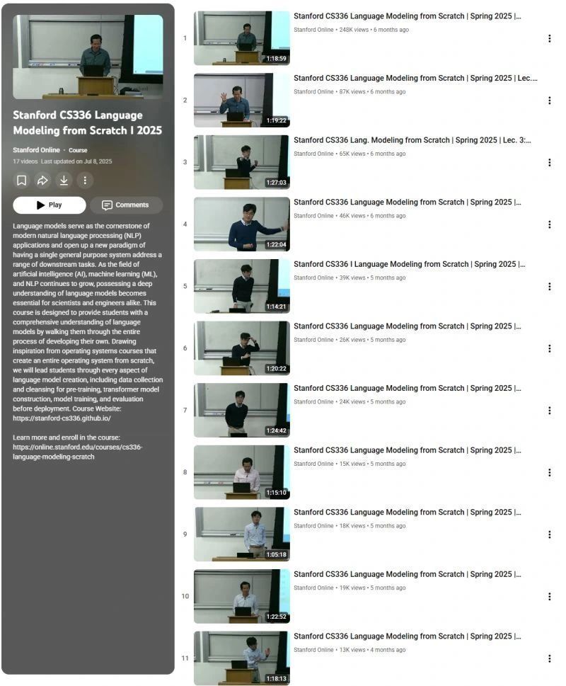 One reason Pallavi’s post resonated is that she did not just critique bootcamps. She pointed people to a concrete alternative: "This free 17-video Stanford course trains you to be an Architect. It’s CS336: Language Modeling from Scratch."