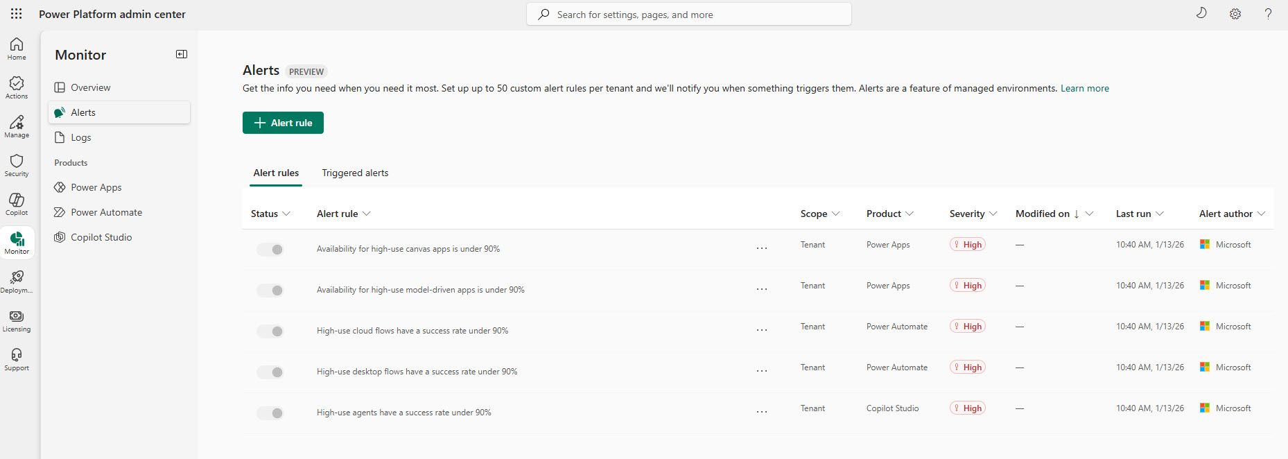 Microsoft has added some preconfigured alerts to the Power Platform Admin Center Monitor menu last month and pushed them to public preview globally. I guess this is a reasonable next step after intro…