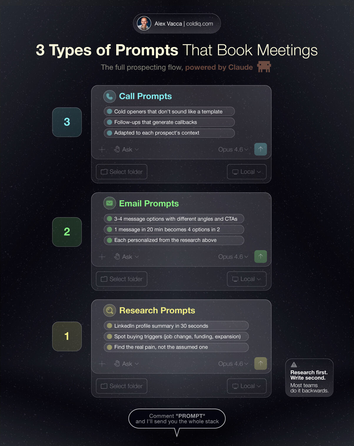 Alex Vacca positions himself as a systems-architect-turned-founder who bridges the gap between high-volume AI automation and high-conversion human sales. His content strategy centers on the "GTM Engineer" mindset, utilizing recurring themes of data-backed transparency, technical stack optimization (specifically Clay, Claude, and n8n), and the transition from software-as-a-service to results-as-a-service. What makes him notable is his refusal to rely on "growth hacks," instead offering dense, technical playbooks that treat sales development as a rigorous engineering problem. His work sits at a sharp intersection of operational transparency and agency scaling, where he openly shares the internal metrics and health habits that fuel a $7M ARR engine to prove his methodologies.
