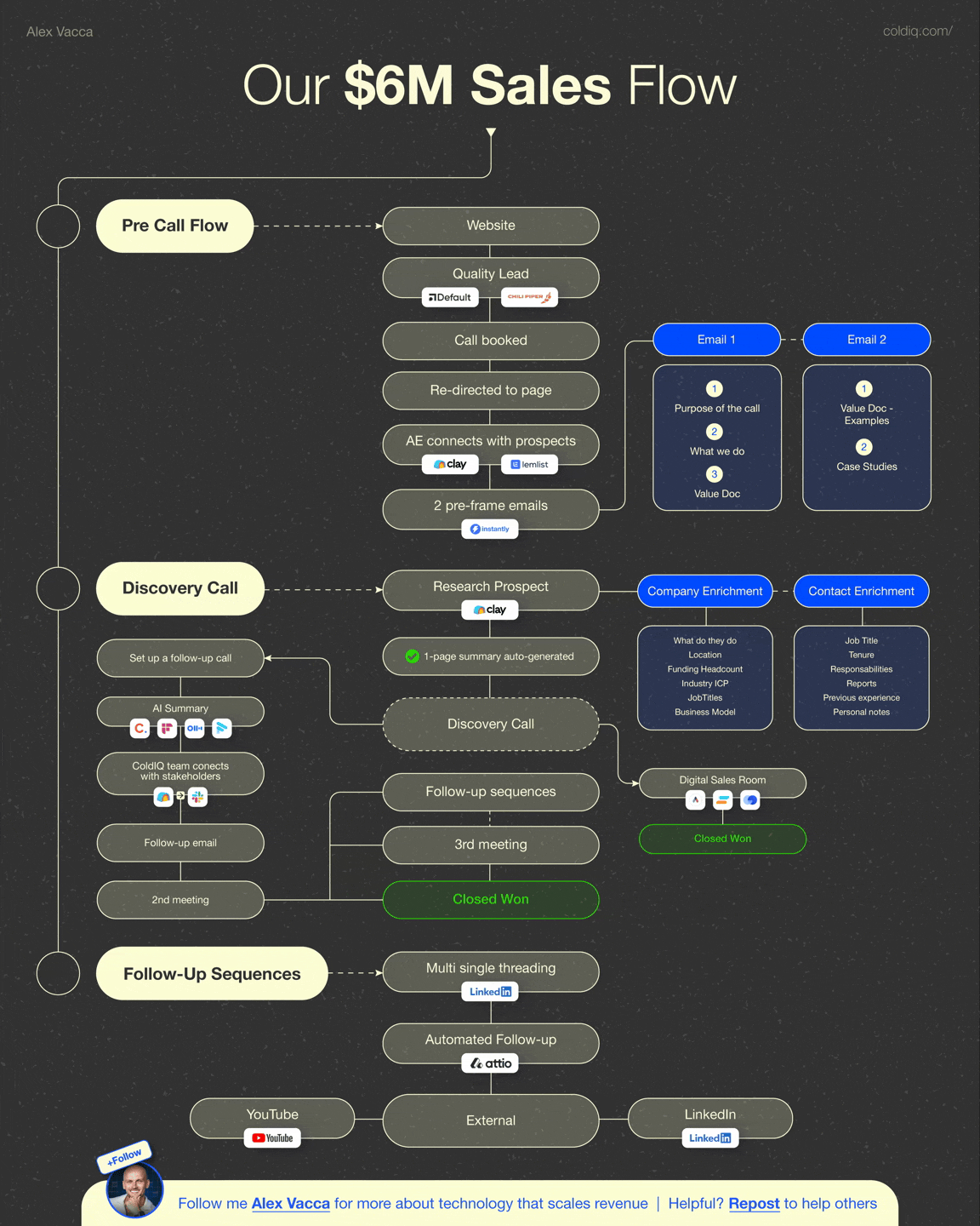 The sales flow that generated $966K ARR. Nearly $1M in new revenue in 30 days. Most people see the content - the LinkedIn posts, the videos, all of it. But content is just the front end. Behind th…