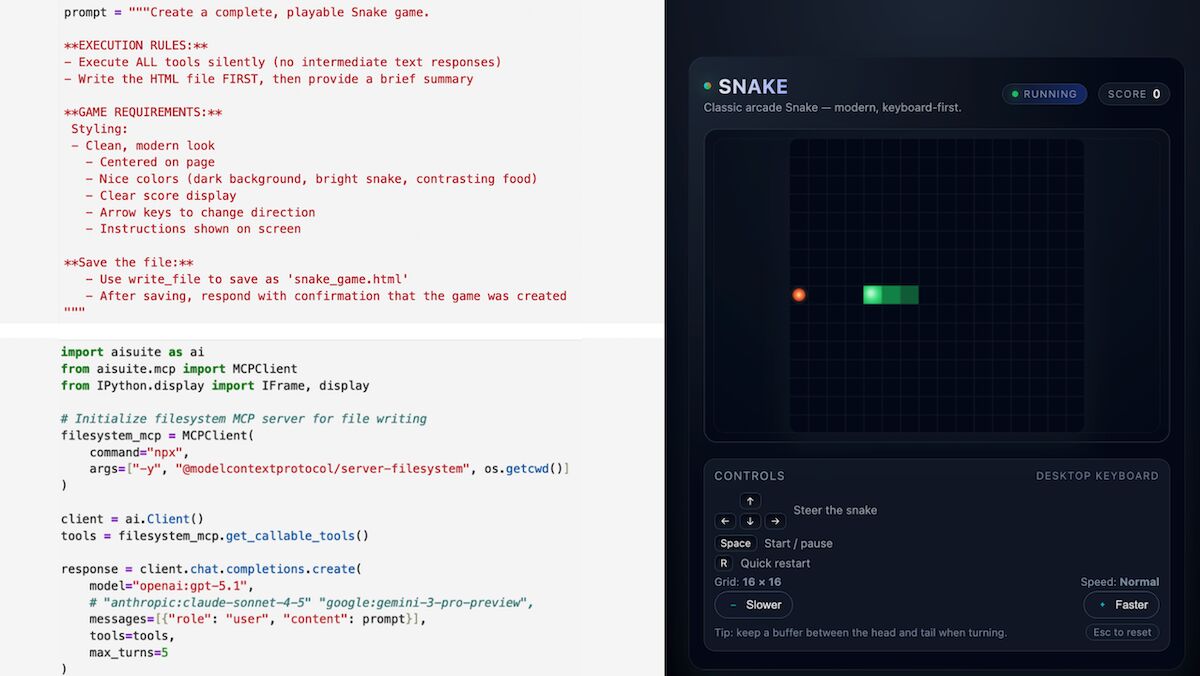 Sharing a fun recipe for building a highly autonomous, moderately capable, and very UNreliable agent using the open source aisuite package that Rohit Prasad and I have been working on. With a few lin…