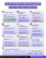 𝟭𝟬 𝗦𝘁𝗲𝗽𝘀 𝘁𝗼 𝗠𝗮𝗸𝗲 𝗬𝗼𝘂𝗿 𝗘𝗙 𝗖𝗼𝗿𝗲 𝗤𝘂𝗲𝗿𝗶𝗲𝘀 𝟭𝟬𝘅 𝗙𝗮𝘀𝘁𝗲𝗿 Most .NET developers don't realize this: EF doesn't limit your query performance — it's limited by how you use…