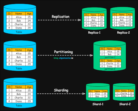 Replication vs. Partitioning vs. Sharding — What’s the Difference? 🔹 𝐑𝐞𝐩𝐥𝐢𝐜𝐚𝐭𝐢𝐨𝐧 - Copies the same data to multiple nodes. - Primary goals: high availability and read scaling - Common set…
