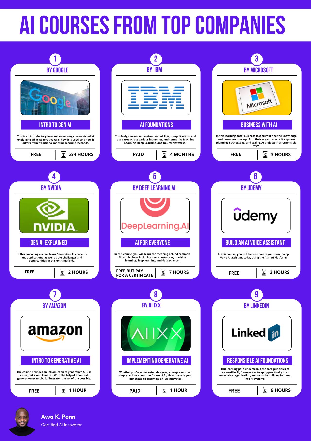 Forget Harvard. Forget Google. Forget Coursera. Learn AI from top companies Worldwide. Learn AI for FREE here: https://lnkd.in/edj3CsFu 🔗 Links are included. 🔖 Save for later. ✳Intro to Gene…