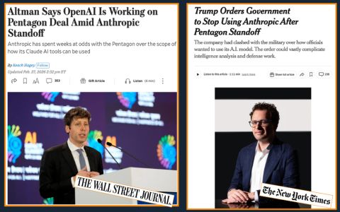 Trump just ordered every federal agency to stop using Anthropic's AI, posting that he would "NEVER ALLOW A RADICAL LEFT, WOKE COMPANY TO DICTATE HOW OUR GREAT MILITARY FIGHTS AND WINS WARS." Sam Altma…