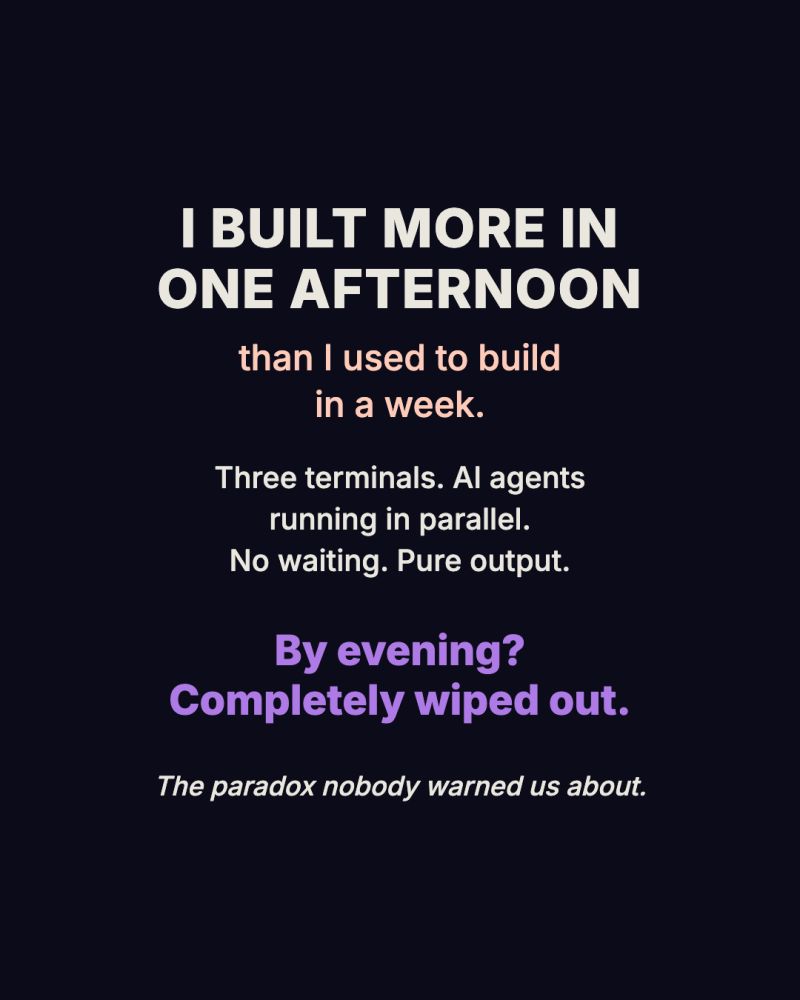 I built more in a single afternoon than I used to build in a week. Three terminal windows open. AI agents running in parallel. Task one running. Task two in progress. Task three queued up. No waitin…