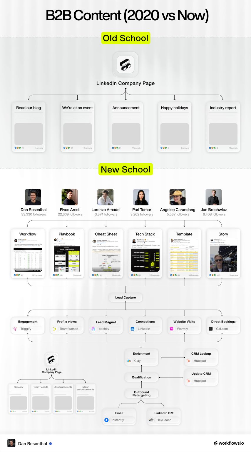 Most B2B companies still don't understand content. The winners are turning it into a team sport. OLD WAY - "We're at this conference!" - "Merry Christmas from Acme!" - Boring post announcements on t…