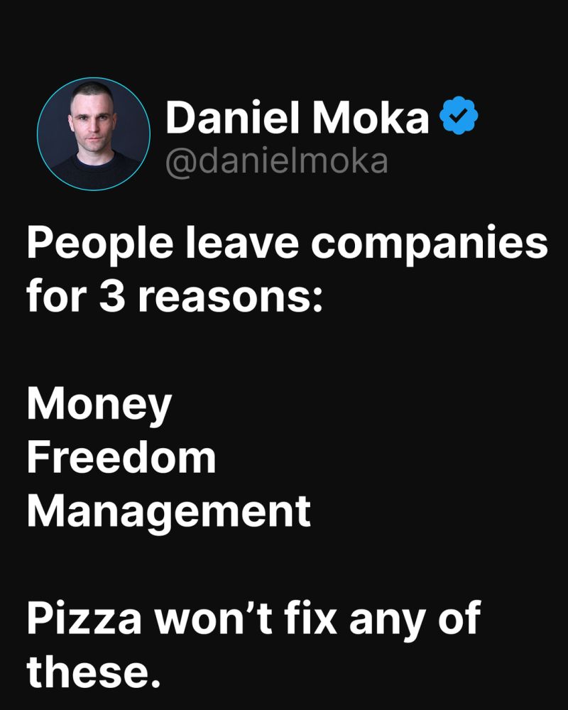 Pizza won't motivate your developers. Beers won't motivate your developers. Ping-pong won't motivate your developers. Your developers don't need motivation. They are already motivated to work in te…