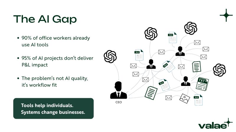Your team uses ChatGPT every day. That's not an AI strategy. It means individuals are solving problems faster. Great. But the company hasn't captured anything. - No shared knowledge. - No compoun…