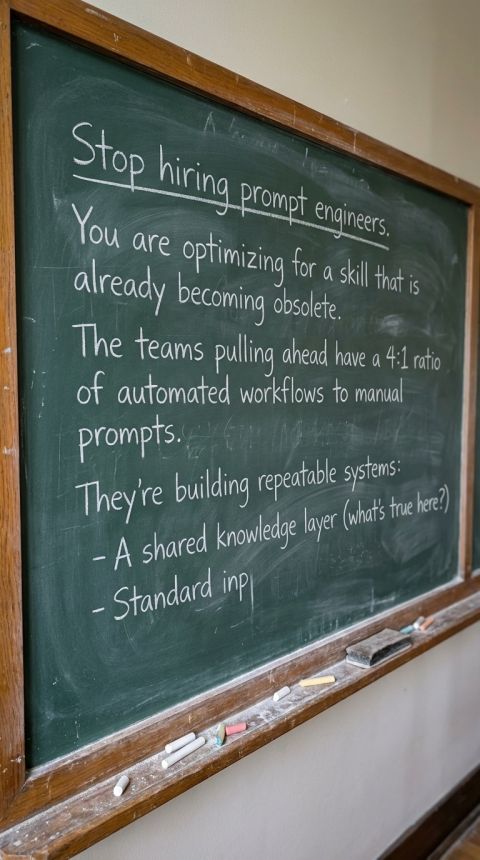 Stop hiring prompt engineers. You're optimising for a skill that's getting automated fast. The winners are hiring builders who can turn AI into reliable, repeatable workflows. The teams pulling ahead…
