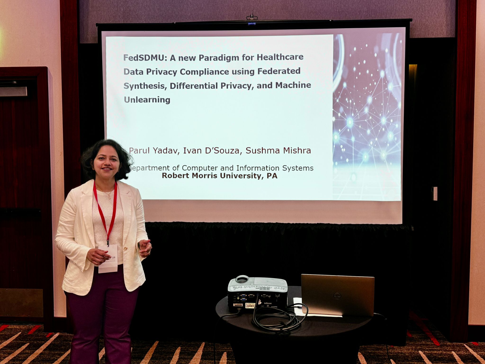 I had the pleasure of presenting our research paper, “FedSDMU: A New Paradigm for Healthcare Data Privacy Compliance using Federated Synthesis, Differential Privacy, and Machine Unlearning,” at the Ha…