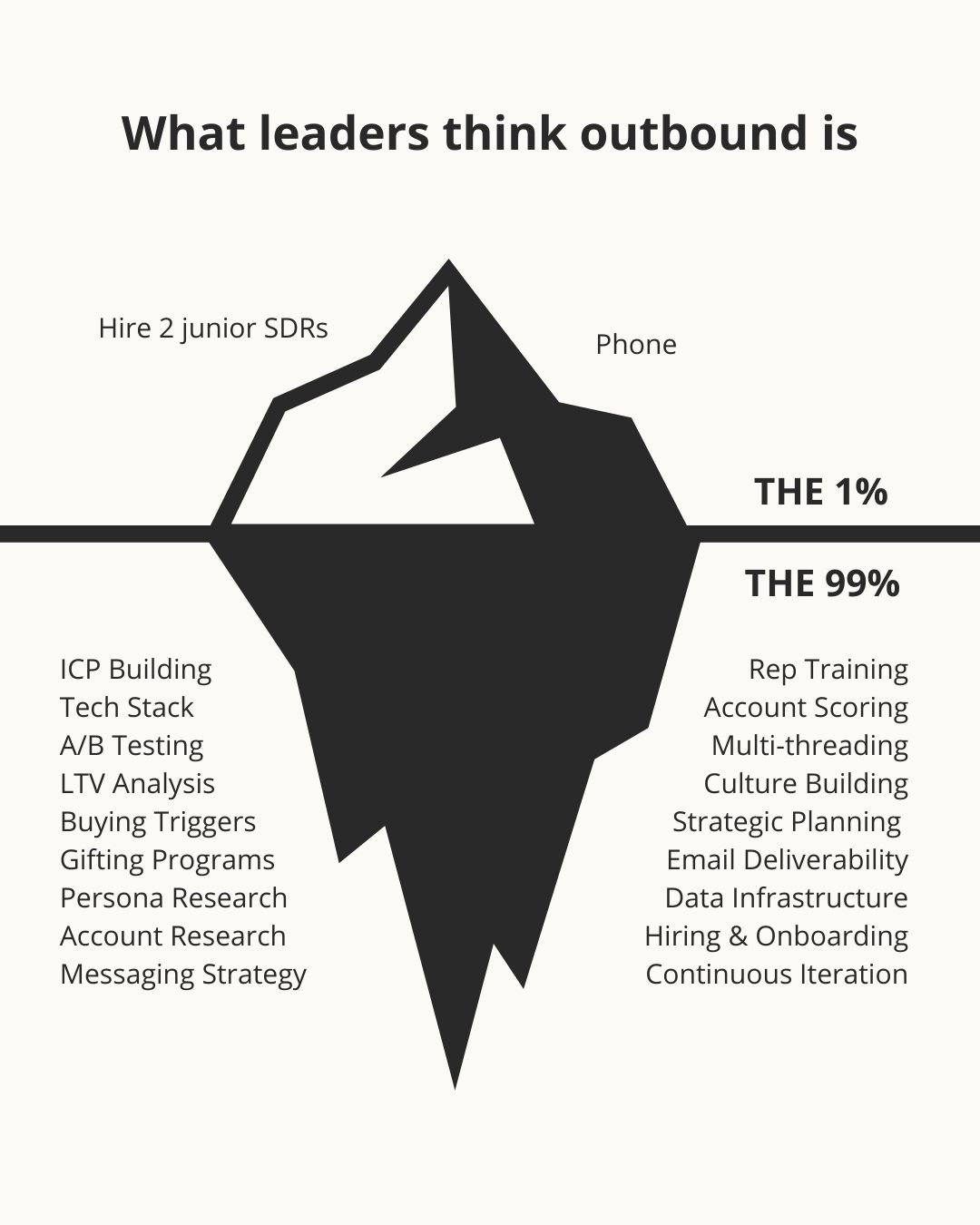 CEO: "We told the team to start doing outbound." 90 days later: nothing. Most leaders think outbound is simple: Hire 2 junior SDRs Buy 1-2 tools Hand them a phone Let them figure out Watch pipeline…