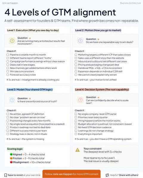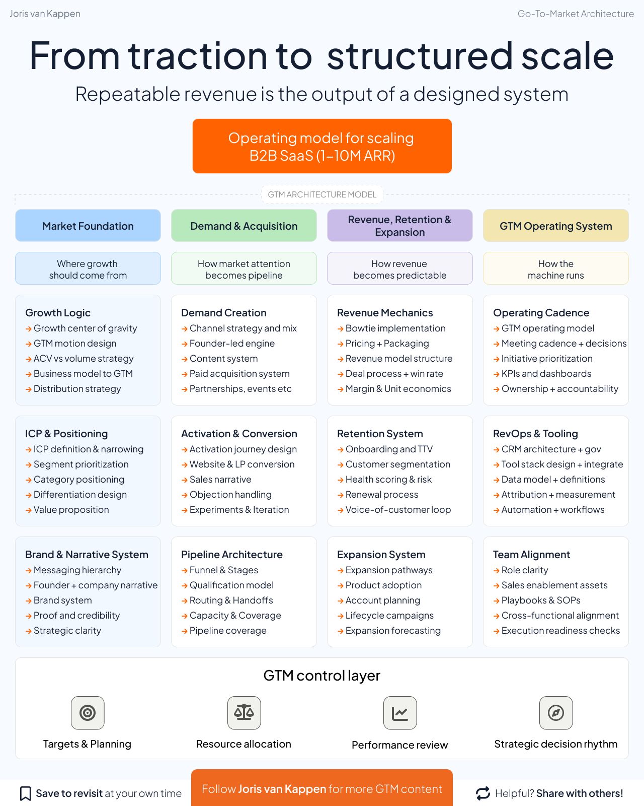 Most scaling B2B SaaS companies already have all the parts: → positioning work → demand programs → a sales process → onboarding → RevOps → dashboards What is missing is the operating model that conne…