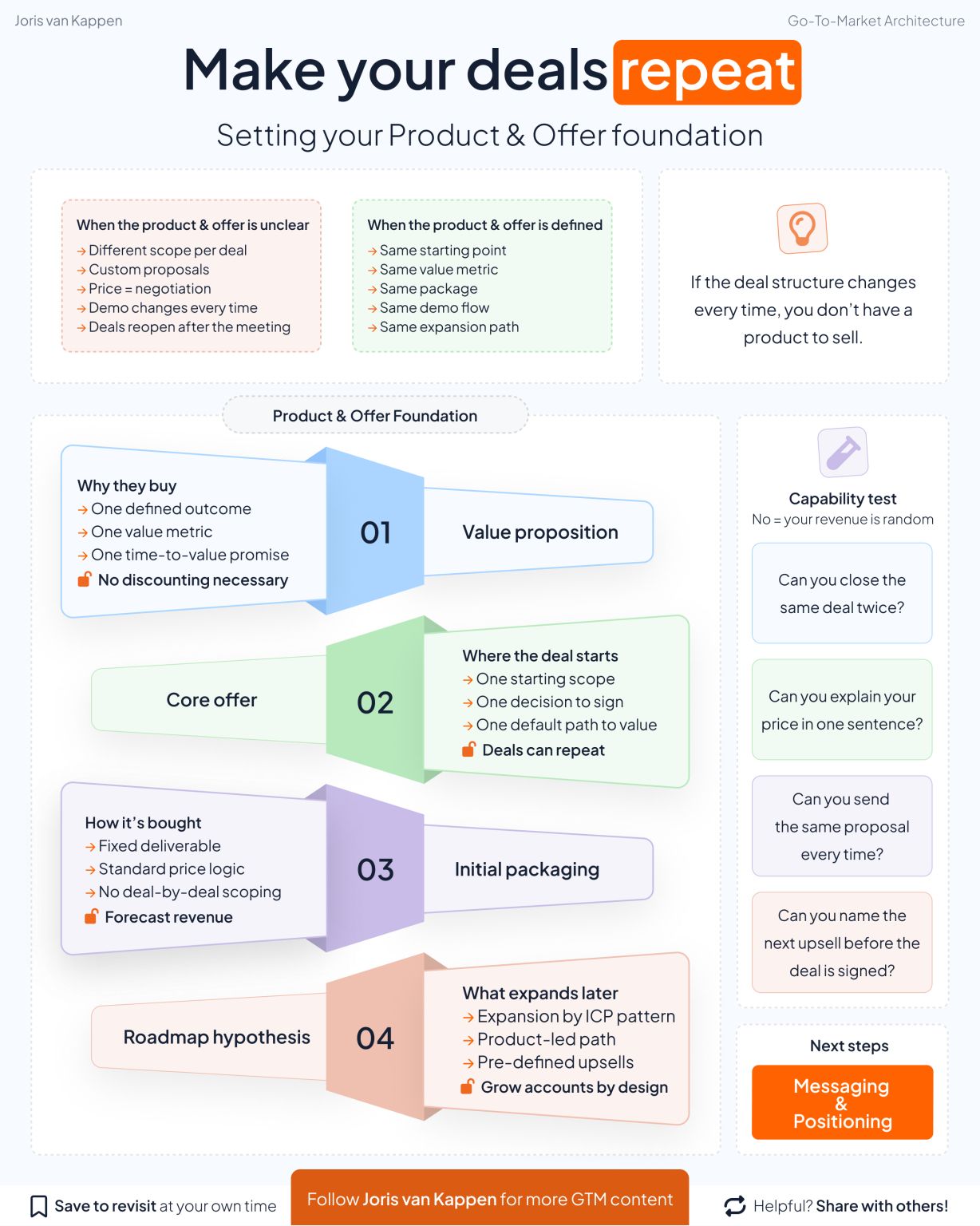 If every proposal is different, you don't have a product to sell. Deals don’t repeat because the product is undefined at the moment of sale. You see it play out in every deal: → Different scope per…