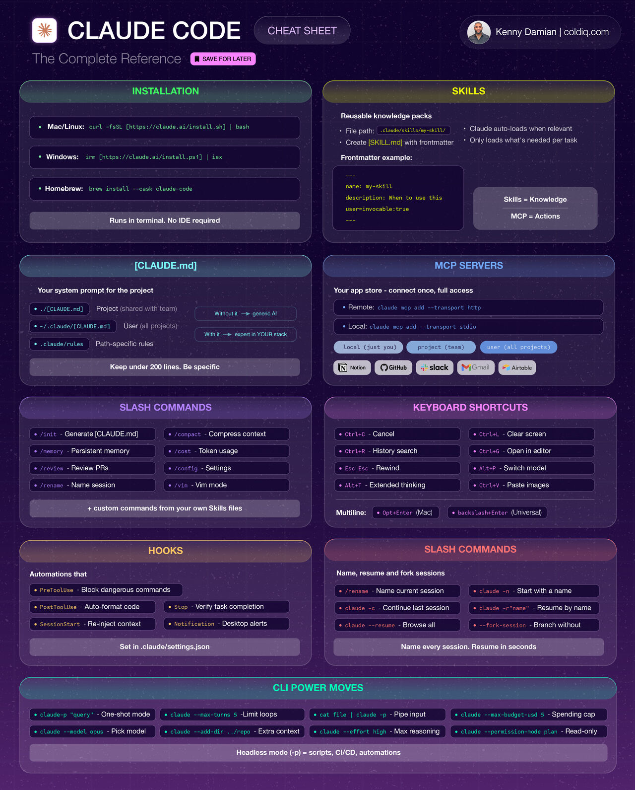 I've spent 600+ hours inside Claude Code. Here's the complete cheat sheet I wish I had before starting. Saving this will save you dozens of hours of trial and error. 1️⃣ INSTALL IN 30 SECONDS M…