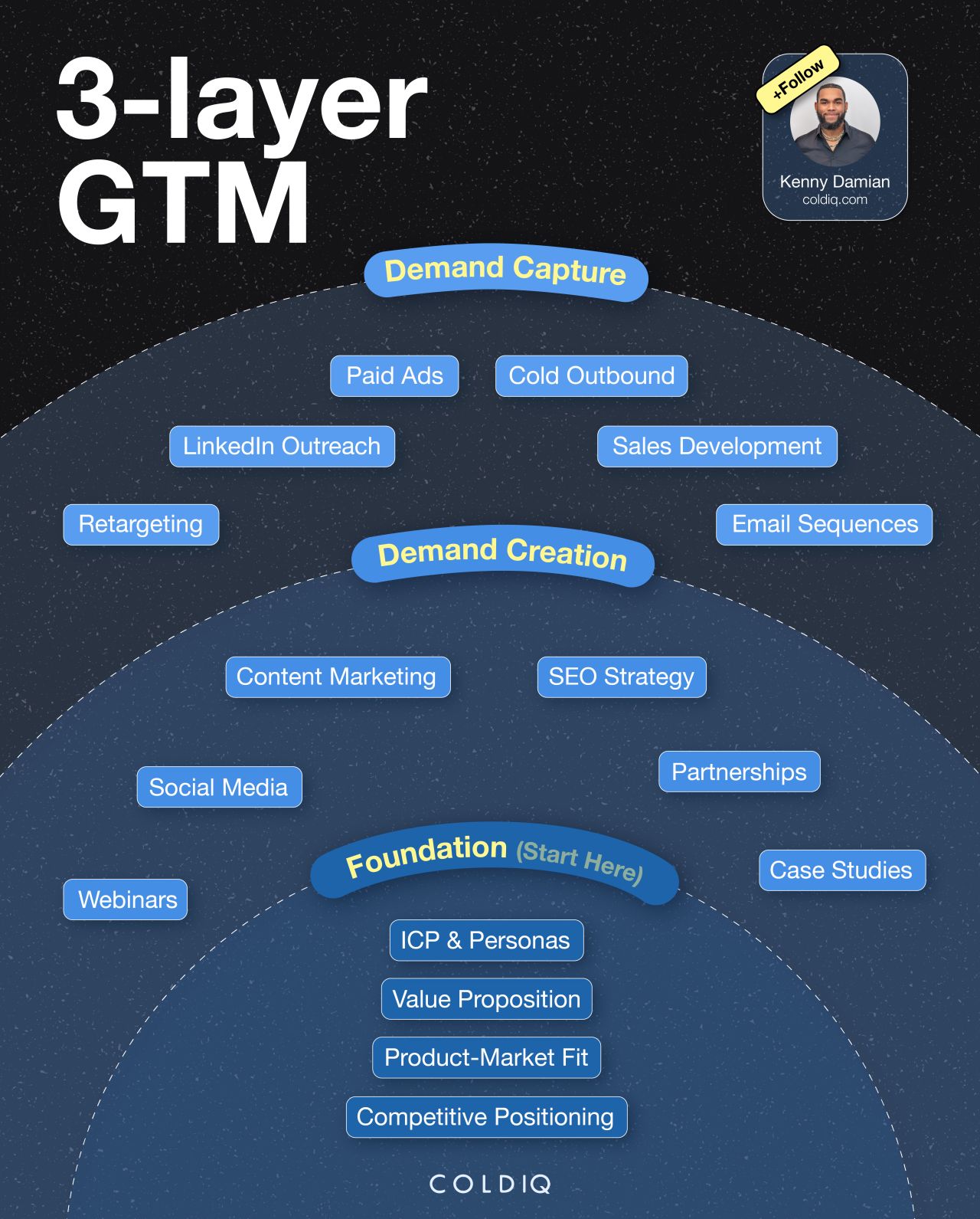 Kenny Damian positions himself as a technical GTM architect who bridges the gap between high-level sales strategy and complex automation infrastructure. His content strategy centers on the "unsexy" backend of outbound sales, moving beyond generic copywriting to focus on rigorous deliverability frameworks, multi-vendor data waterfalls, and agentic AI systems. He is notable for his "build in public" transparency, frequently sharing the exact tech stacks (Clay, n8n, Claude Code) and diagnostic checklists used to scale ColdIQ to $6M ARR. The most compelling intersection in his work is the fusion of RevOps and software engineering, where he treats a sales motion not as a series of tasks, but as a programmable operating system that functions autonomously.
