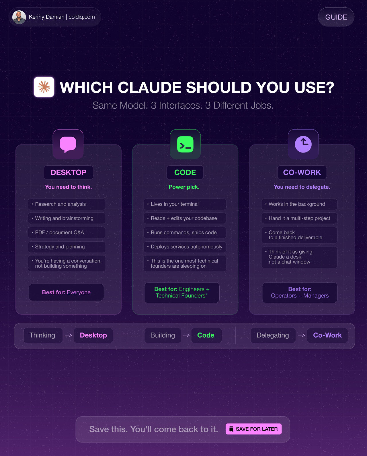 Everything you need to know about what version of Claude you should be using. Claude Desktop → You need to think → Research, brainstorm, write, analyze → Upload a PDF and ask questions → Draft em…