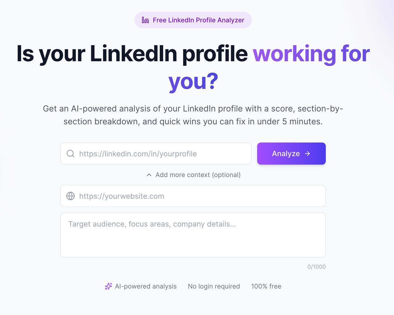 100+ people used our free LinkedIn Profile Analyzer last week. And we learned a lot from analyzing 100+ profiles. The average score was 58 out of 100. Let that sink in. Most people think their prof…