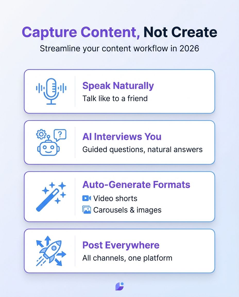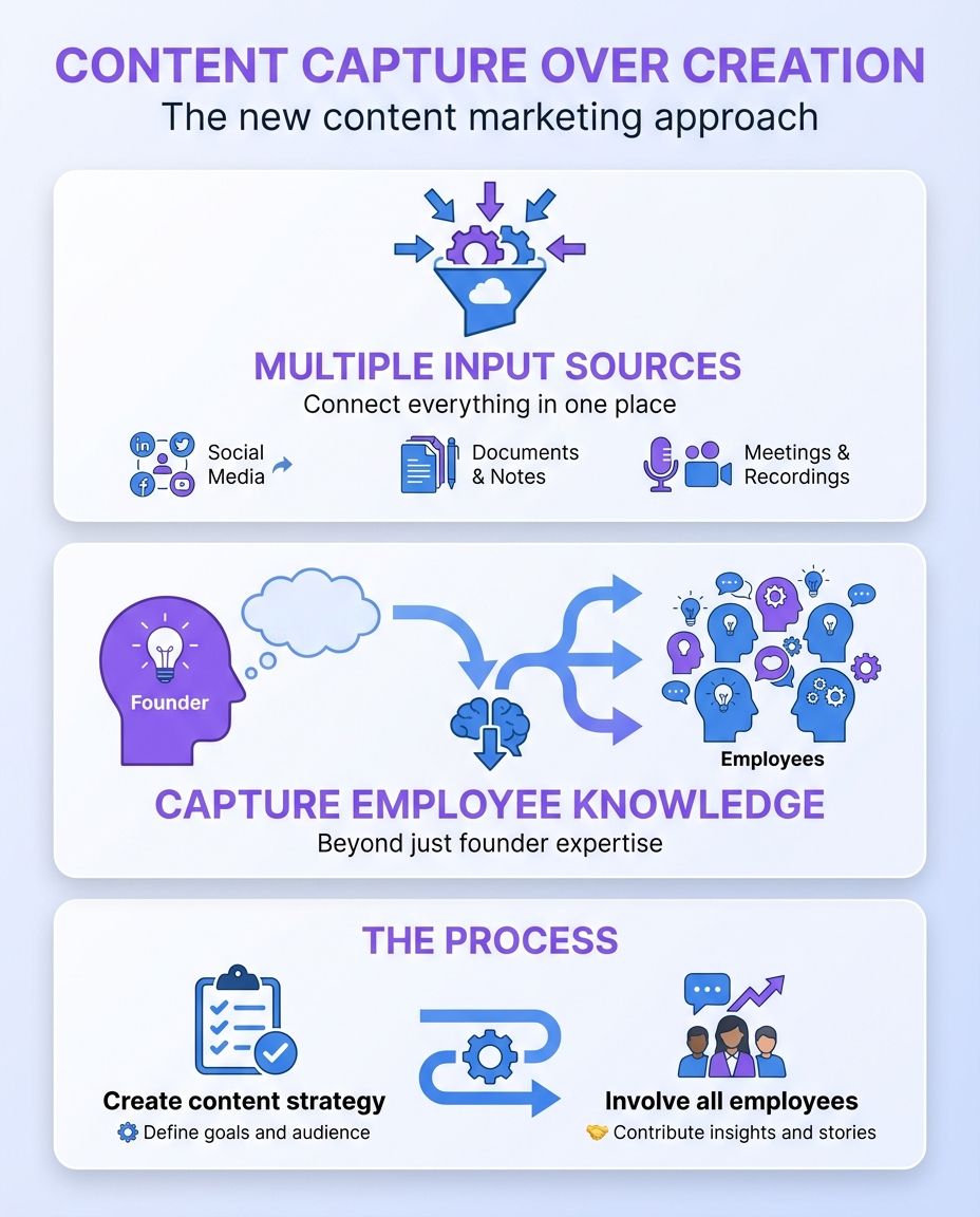 Content capture is replacing content creation. Here's what that means for your marketing team in 2026: - Your employees already have the expertise you need. - Your engineers understand technical pr…
