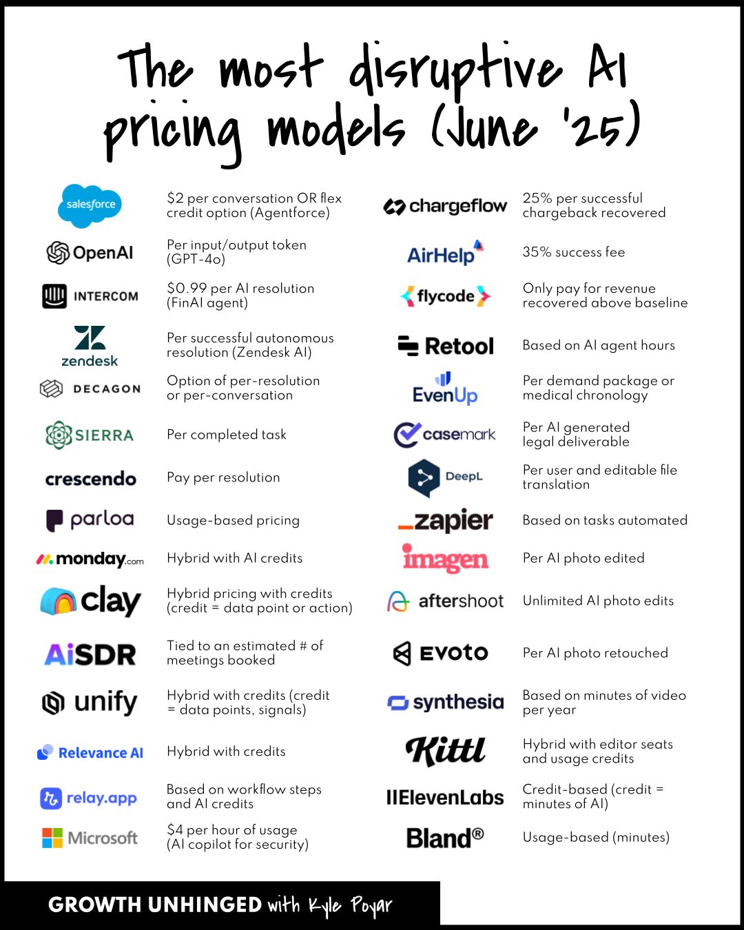 The most disruptive AI pricing models so far ⤵️ I made this less than a year ago in June 2025. Wow, it's getting outdated quickly: - SFDC introduced a new "agentic ELA" & new user license options…