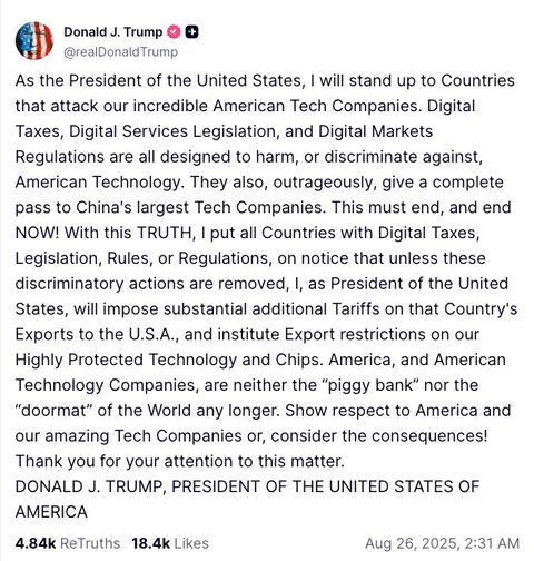 Wordt dit de volgende stap in de handelsoorlog? Trump dreigt met nieuwe exportrestricties als we niet 'lief' zijn voor de TechBro's. Wat hij vergeet: we hebben een volkomen scheve handelsbalans met A…