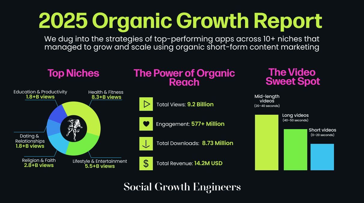 We analyzed 9.2 BILLION views and turned it into the biggest marketing report for 2026: Our team at Social Growth Engineers analyzed over 50,000 videos from consumer apps in 12 different verticals.…