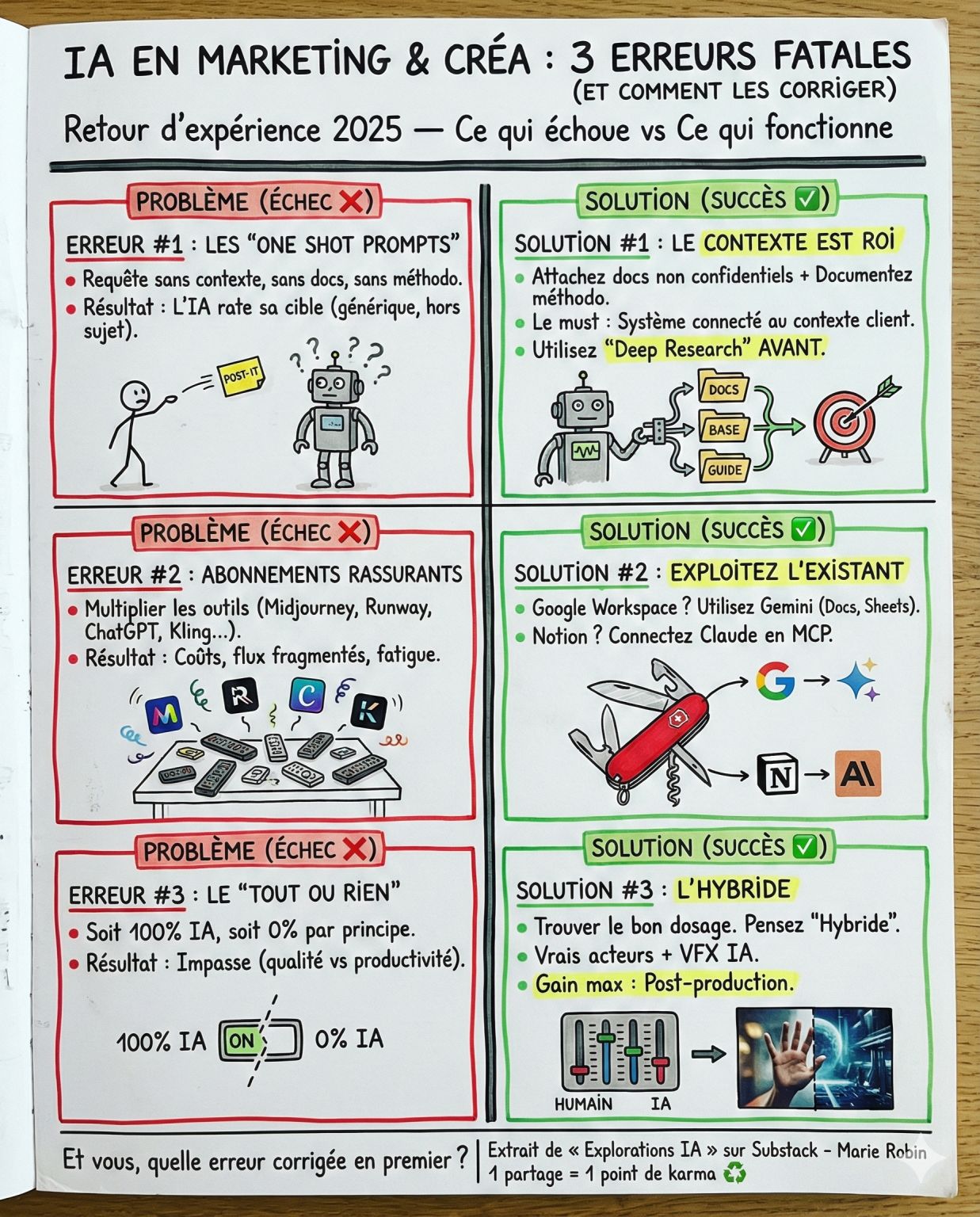 En 2025 j’ai accompagné des dizaines d’équipes marketing et agences créa. 3 erreurs reviennent systématiquement! Erreur n°1 : Les “one shot prompts” On balance une requête dans ChatGPT comme vous…