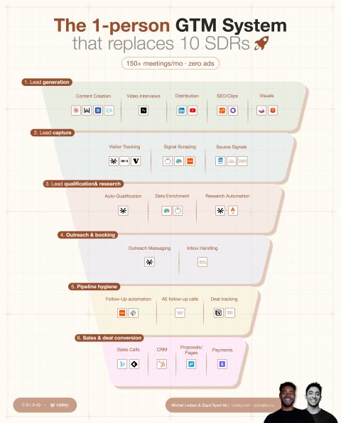 Valley’s GTM machine books more meetings than 10 SDRs with just 1 person. Zayd, their CEO, is convinced every GTM can replicate it 👇 1. Content Machine - Zayd does bi-weekly content interviews on…