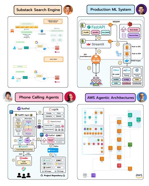 4 projects to grow as an ML / AI Engineer With code, articles and videos ๐ Today, I'm sharing four projects from the past few months that will help you level up your skills as AI Engineers and MLโฆ