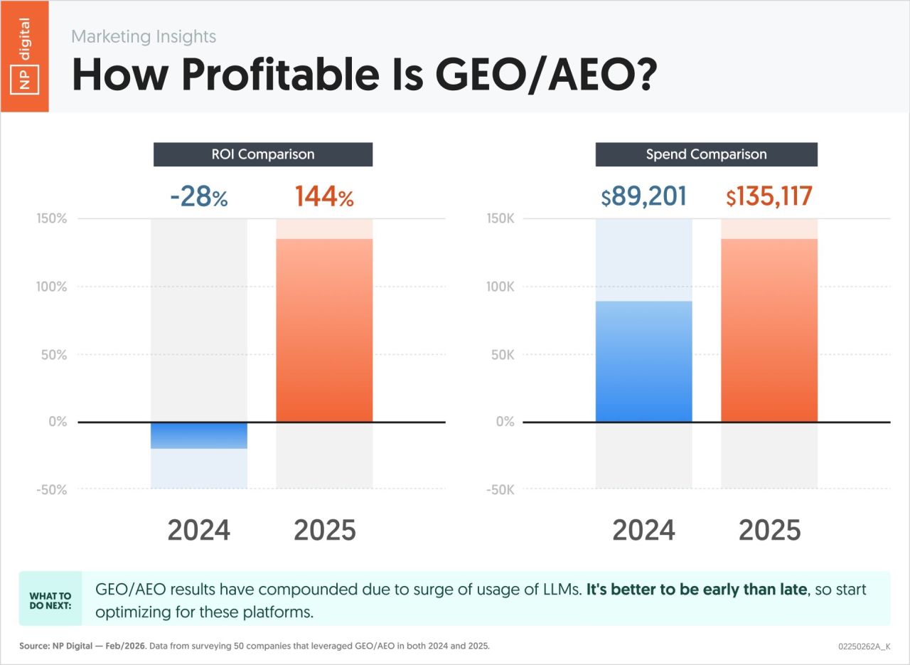 GEO/AEO is probably going to be one of the most profitable marketing channels at scale, if not the most profitable. Check out the ROI from 2024 versus 2025. I would expect it to accelerate even furt…