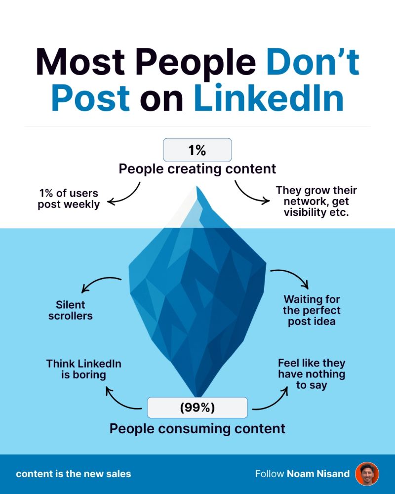 Even in 2026, only 1% of LinkedIn users actually post. That’s why it still feels weird to you. You think LinkedIn is corporate, boring, outdated. But really, you’re just surrounded by people who ne…