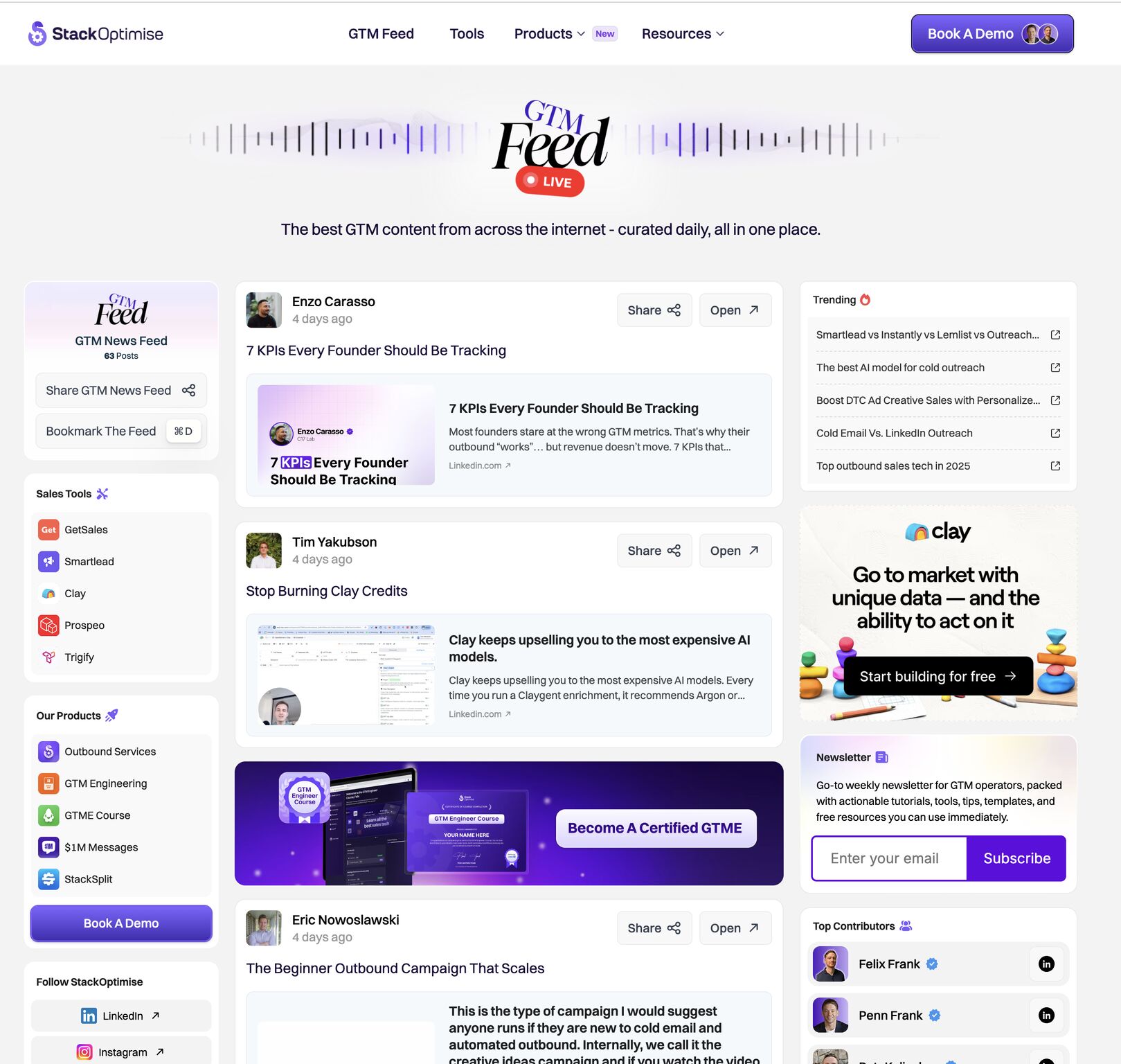 Top 3 Posts from the GTM Feed this week: 1. Here's how to automate 90% of your proposal generation with Clay and Google Slides by Patrick Spychalski ↳ https://lnkd.in/g3nWi5-3 2. The creative idea…