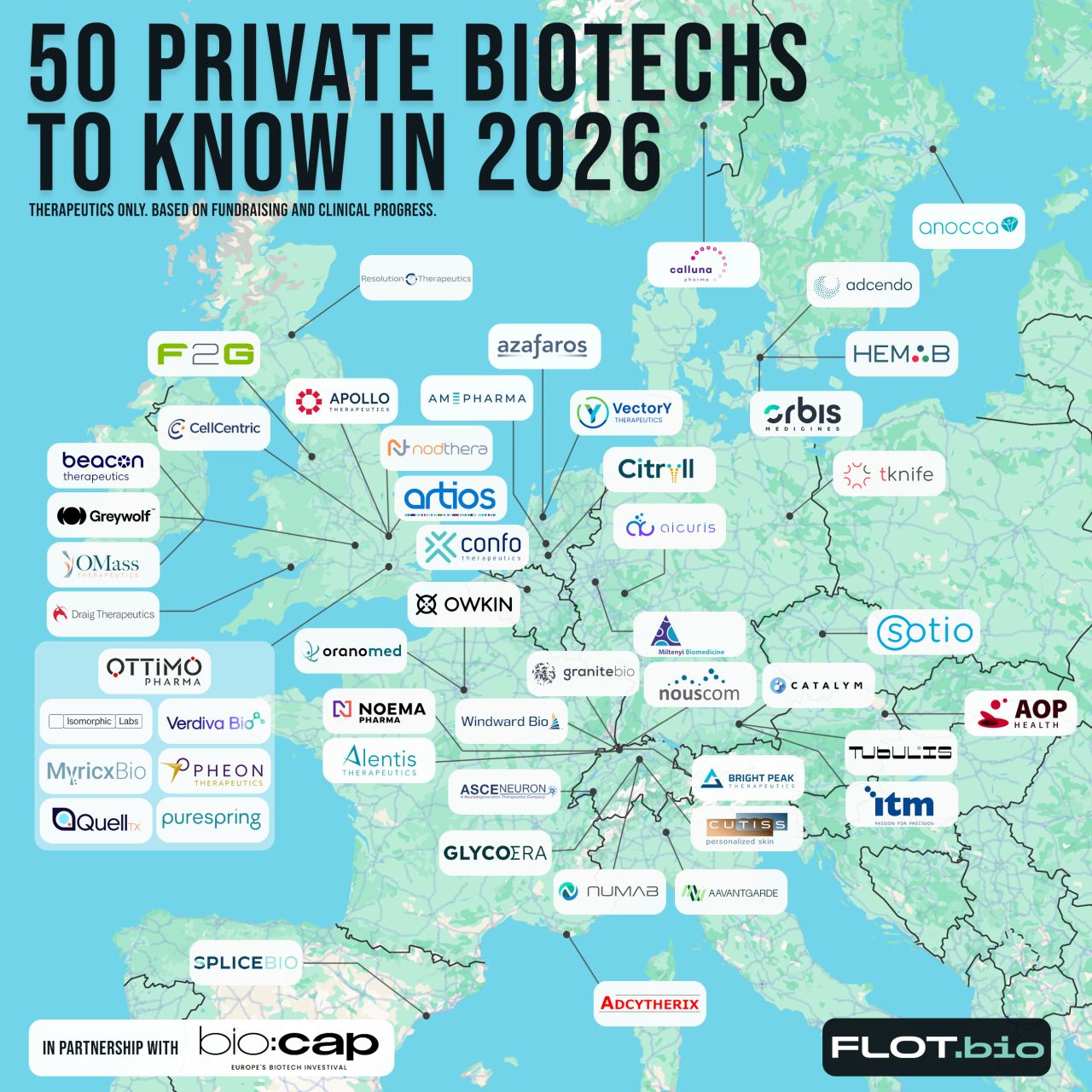 Remarkable private biotechs ahead! As always, you can access the data behind the map for free in our app, below: 👉 https://map.flot.bio/ Criteria: Therapeutics only. Prioritized significant fundrai…