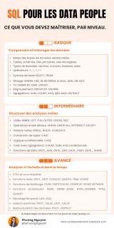 Connaissez-vous les trois niveaux en SQL ? Le SQL ne se maîtrise pas d’un coup. Il progresse par niveaux. - Basique. Comprendre et interroger les données. - Intermédiaire. Structurer des analyses mé…