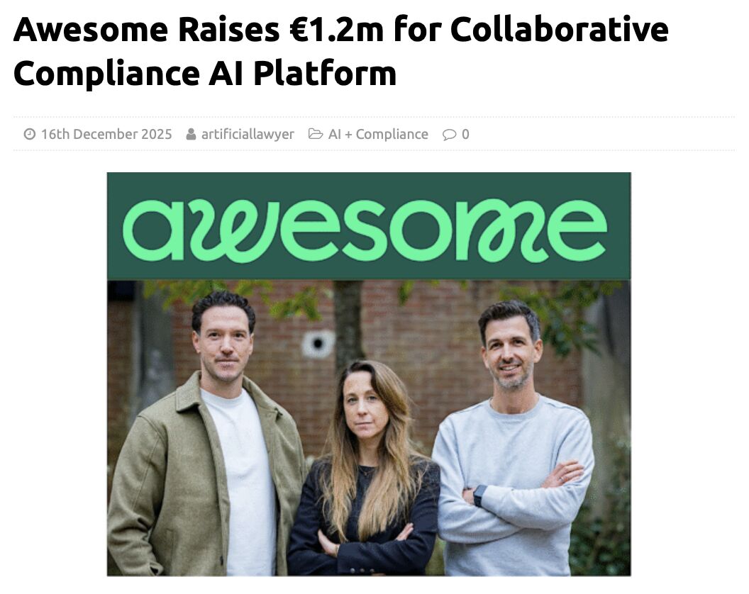Awesome Raises €1.2m for Collaborative Compliance AI Platform Awesome Compliance has raised a €1.2m pre-Seed round for a new collaborative AI platform, which handles compliance needs for GDPR, the EU…