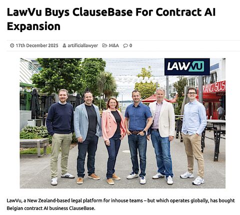 LawVu Buys SantaClauseBase For Contract AI Expansion LawVu, a New Zealand-based legal platform for inhouse teams – but which operates globally, has bought Belgian contract AI business ClauseBase. The…