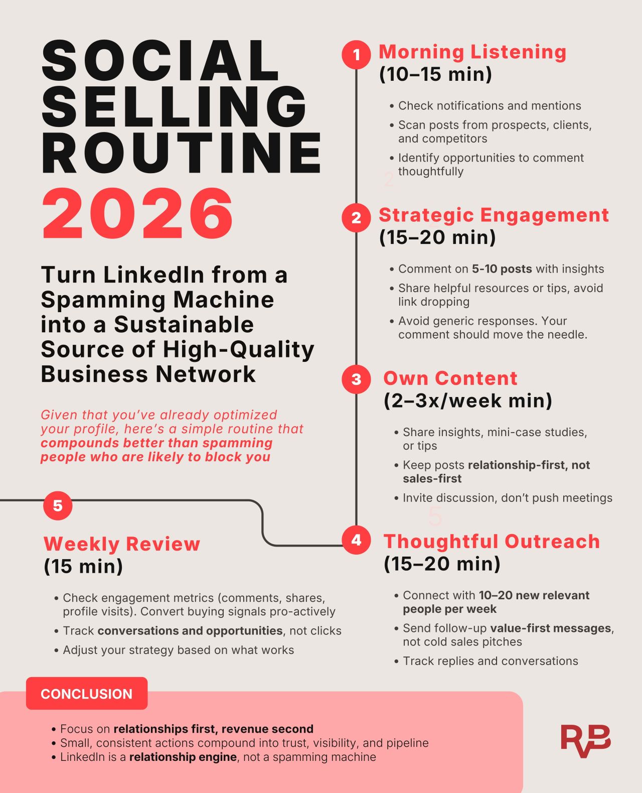 Your Social Selling Routine Is Costing You Deals. Not because you’re inactive. But because you’re inconsistent. You post when you feel inspired. You connect when you need leads. You message when pi…