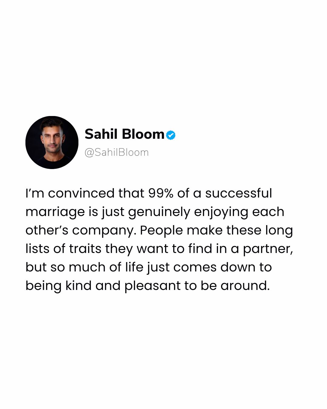 Want to know the secret to a lasting marriage? (It's hiding in plain sight). I’m convinced that 99% of a successful marriage is just genuinely enjoying each other’s company. People make these long l…