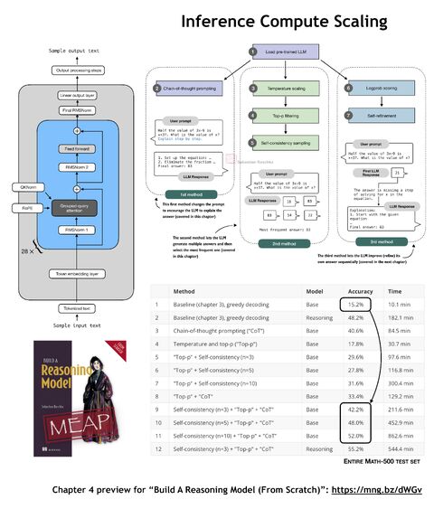 Inference-scaling lets us trade extra compute for better modeling accuracy. Next to reinforcement learning, it has become one of the most important concepts in today's LLMs, so the book will cover it…
