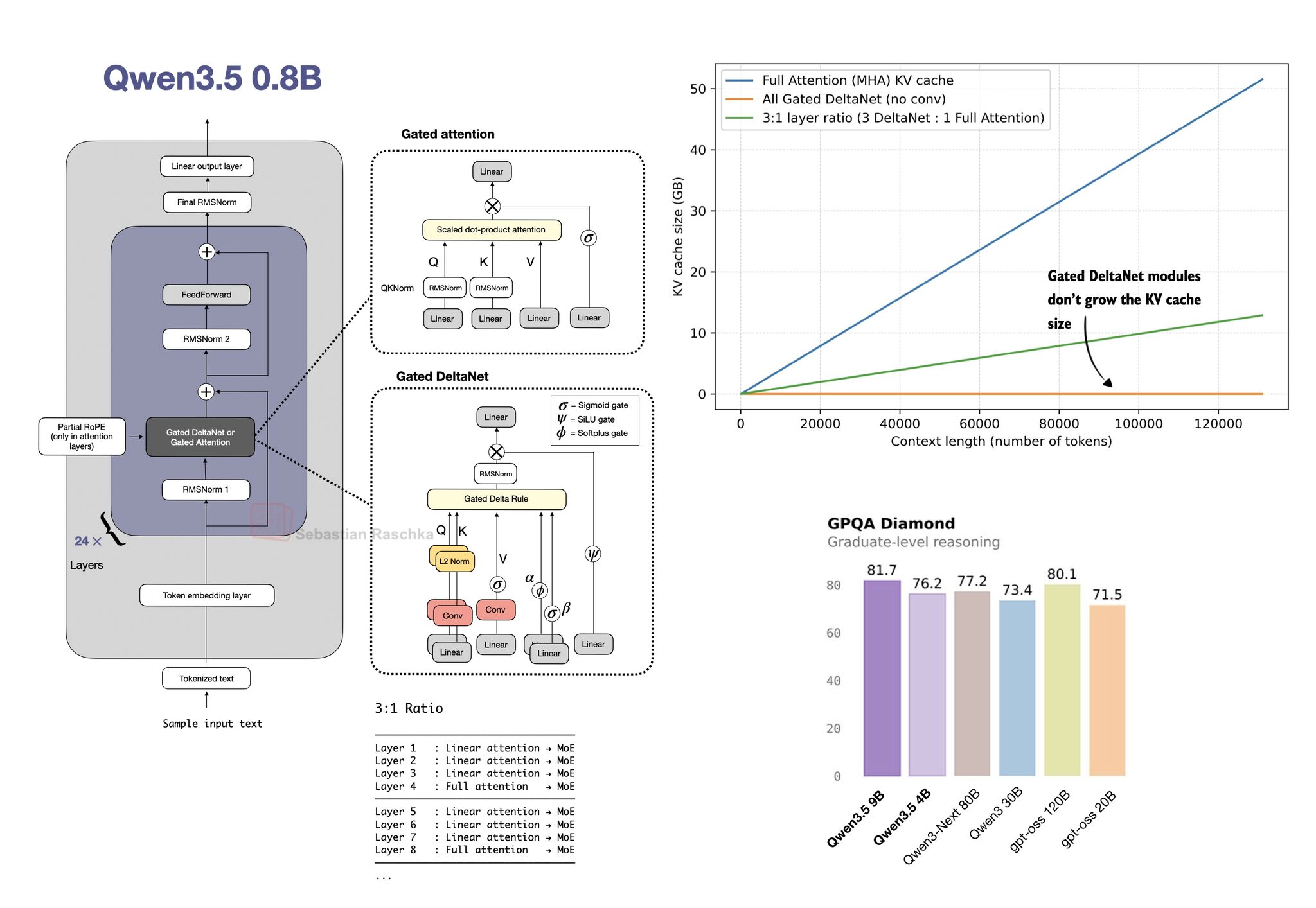 I coded up a Qwen3.5 from-scratch reimplementation for educational purposes. The full suite of smaller Qwen3.5 open-weight LLMs (0.8B, 2B, 4B, 9B) was released earlier this week, and it's probably the…