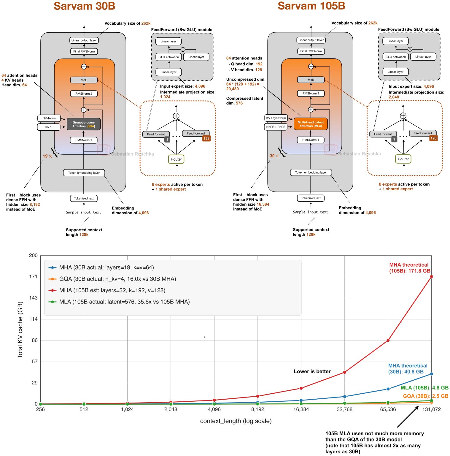 While waiting for DeepSeek V4 we got two very strong open-weight LLMs from India yesterday. There are two size flavors, Sarvam 30B and Sarvam 105B model (both reasoning models). Interestingly, the s…
