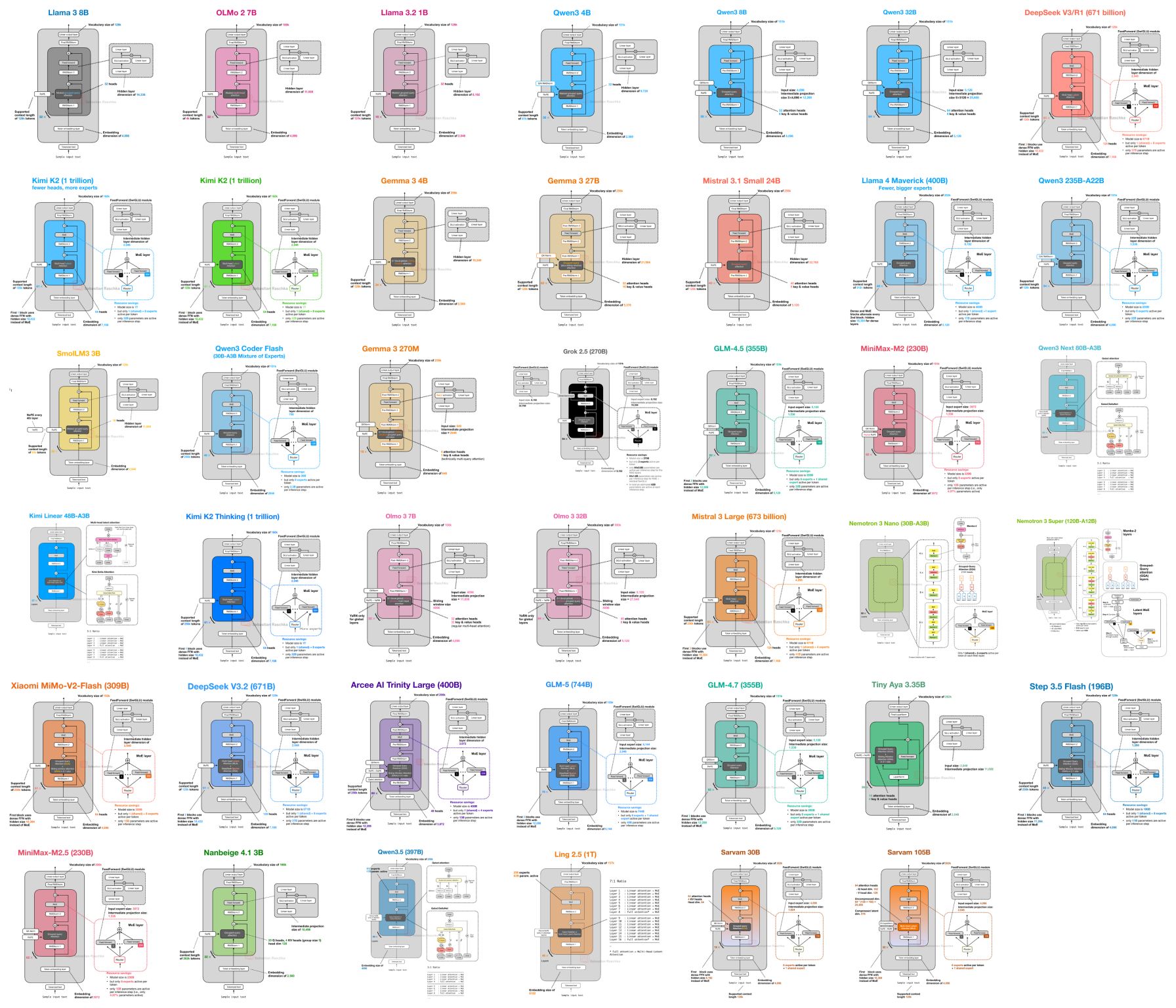 I put together a new LLM Architecture Gallery that collects the architecture figures I shared over the months and years in one place. The goal is to make it easier to quickly browse recent open-weigh…