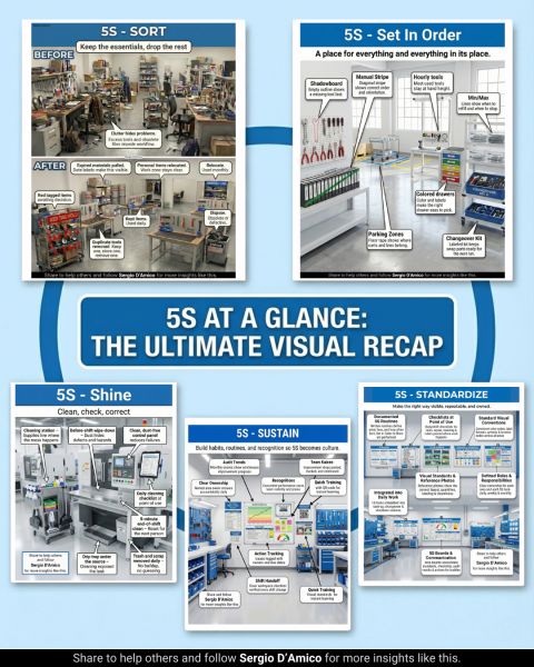 Most 5S training is forgettable. But a visual recap makes each step stick instantly. 5S can change your whole work day. You make your space safe. You see waste fast. You spot issues quickly. You kee…