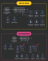 All-in-One vs. Agent Orchestrator Most people start with a single AI Agent. A specialist to solve a specific problem. It’s simple, it works, but it’s limited. 𝗔𝗜 𝗔𝗚𝗘𝗡𝗧 (𝗦𝗶𝗻𝗴𝗹𝗲 𝗦𝗽𝗲𝗰…