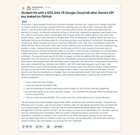 That’s why AI will NOT replace Software Engineers. This guy on Reddit pushed his Google Gemini API key to GitHub by accident. He thought the repo was private and wasn’t checking email over summer. Th…