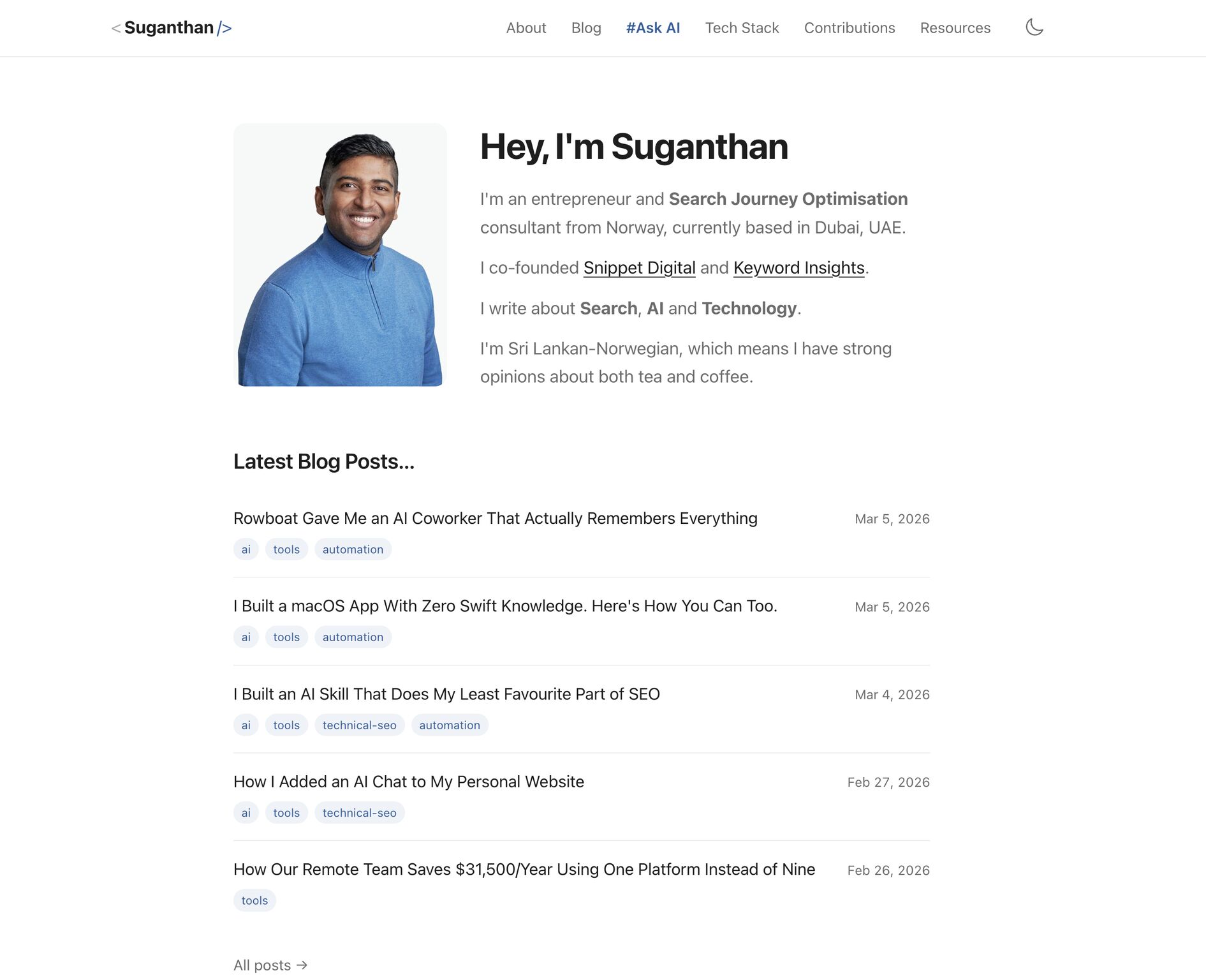 Suganthan Mohanadasan positions himself as a high-level technical architect at the intersection of SEO and AI engineering, moving far beyond traditional search marketing into the realm of Search Journey Optimization. His content strategy centers on "building in public" by releasing sophisticated, open-source tools like MCP servers that bridge the gap between LLMs and raw search data. He is notable for his rigorous, experiment-driven transparency, often debunking AI hype with hard statistical comparisons between LLMs and classical models like Prophet or ARIMA. By blending deep technical execution with strategic consulting, he provides a unique value proposition: he doesn't just predict the future of AI search; he builds the infrastructure for others to navigate it.