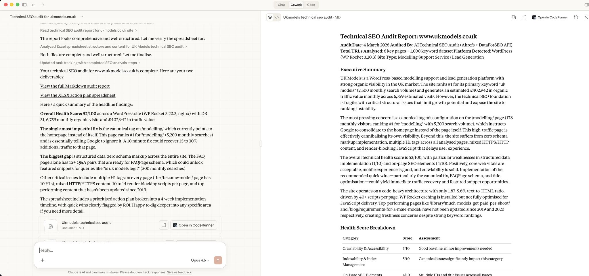 I spent 6 hours last month turning a Screaming Frog CSV into a client deliverable. Not crawling. Not strategising. Just... wrangling rows in a spreadsheet. Categorising issues. Scoring severity. Wri…