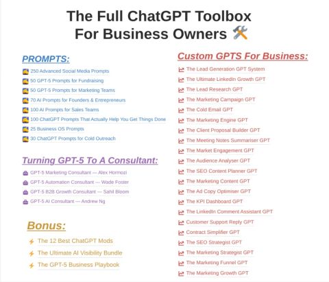 I’ve Created A Free Toolbox of Resources For Business Owners To Unlock ChatGPT’s Full Potential Over the last few months I’ve been building custom GPTs, prompt packs, and toolkits. So I decided t…