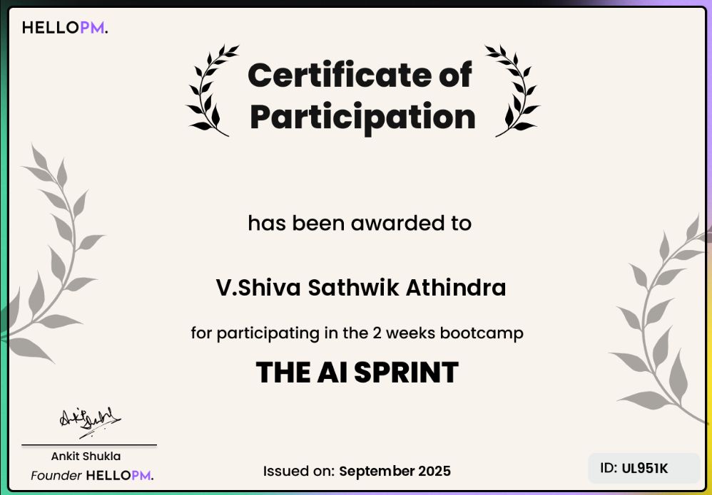 Vadla Shiva Sathwik Athindra positions himself as a pragmatic builder-philosopher who prioritizes the psychological shift from passive learning to active execution. His content strategy centers on the "execution gap," using personal failures in hackathons and competitions to argue that preparation is often a sophisticated form of procrastination. He is notable for his anti-tutorial stance, frequently challenging the comfort of certifications and "safe" learning environments in favor of high-pressure, ambiguous problem-solving. There is a compelling intersection in his work between technical AI development and Victorian-era craftsmanship, where he advocates for building software that is not just functional and fast, but meaningful and enduring.