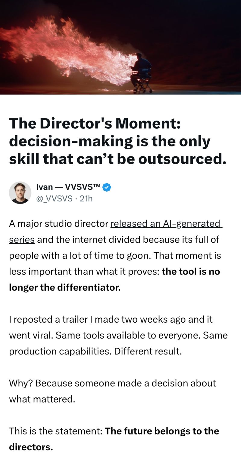 Pendant des années, on a cru que le pouvoir créatif venait des outils. Des studios. Des budgets. Des autorisations. L’IA vient de faire exploser cette illusion. 👉 Les outils sont partout. 👉 La pro…